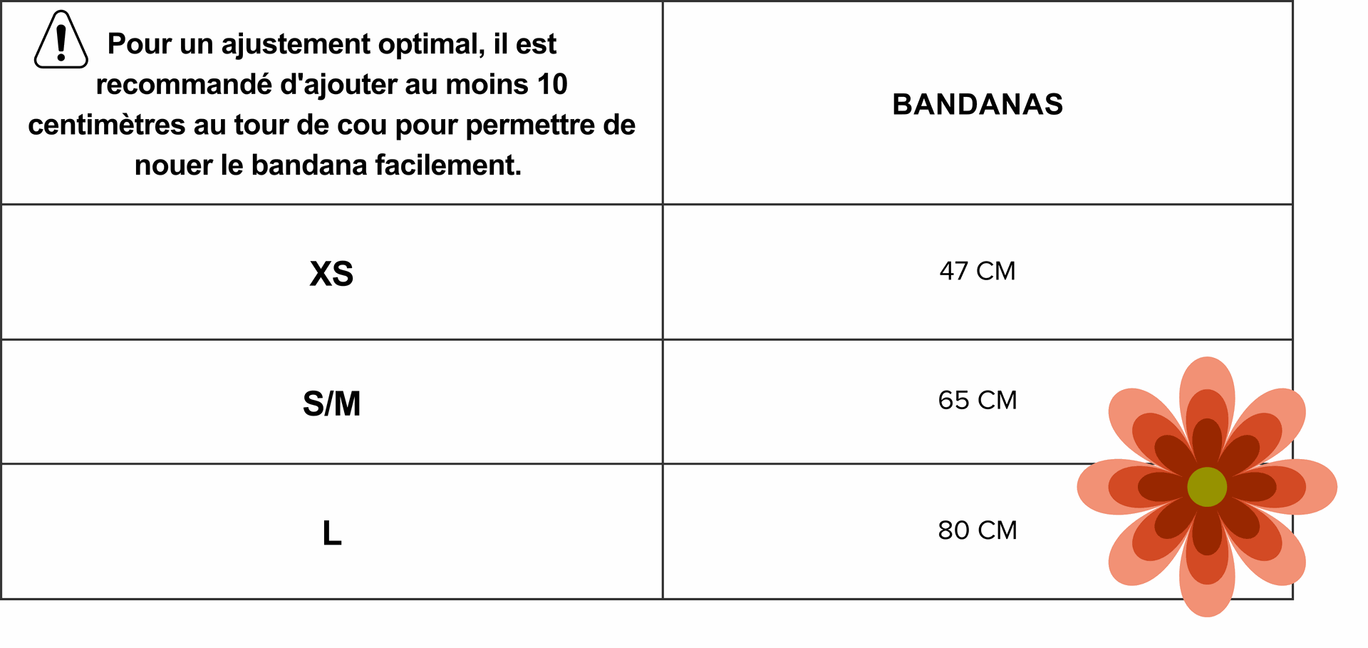 Exemple : Mon malinois a un tour de cou de 44 cm, et je lui prends un bandana taille S/M.